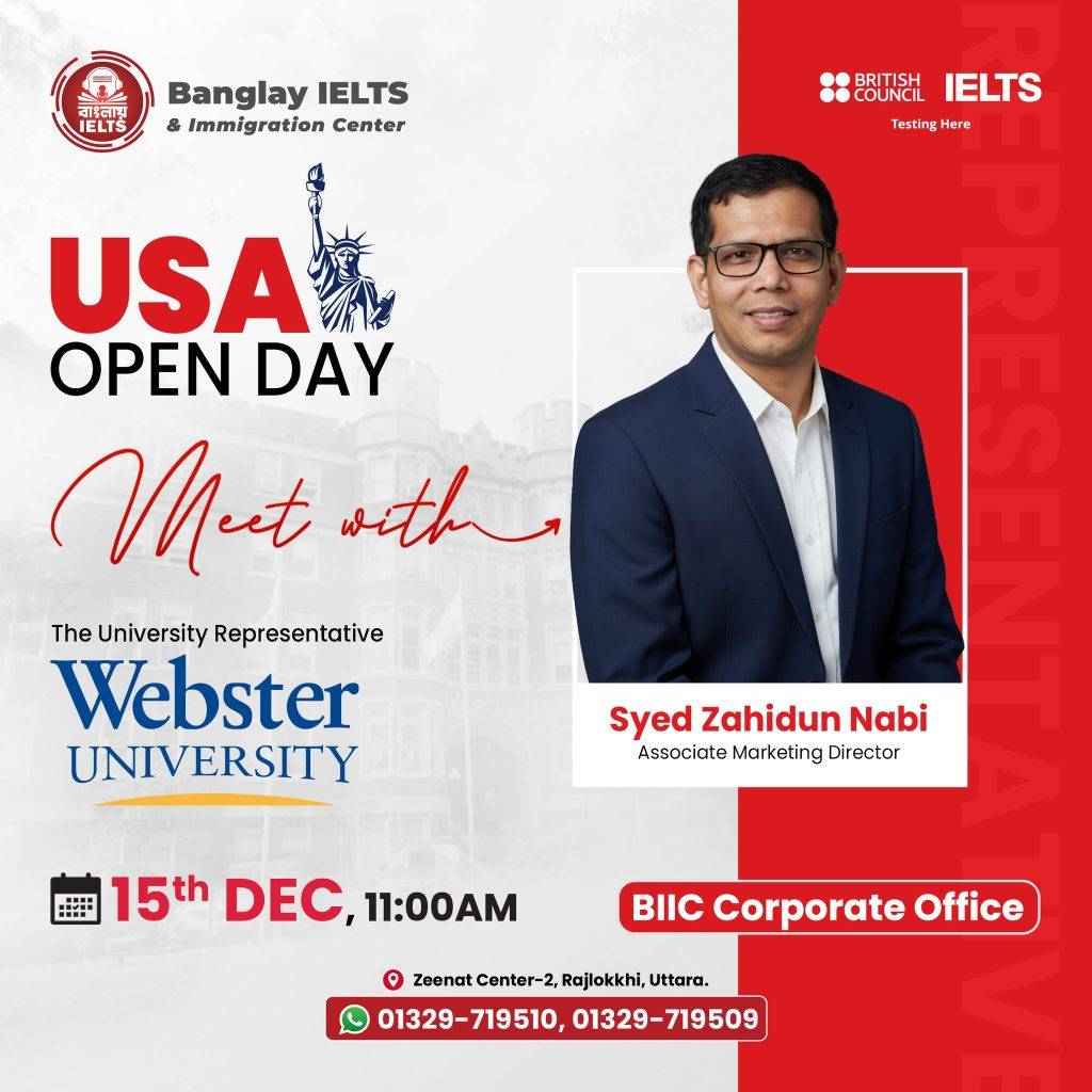 Join us on 15th December, from 11:00 AM to 5:00 PM, at the BIIC Corporate Office for an exclusive USA Open Day, proudly hosted by Banglay IELTS & Immigration Center (BIIC).